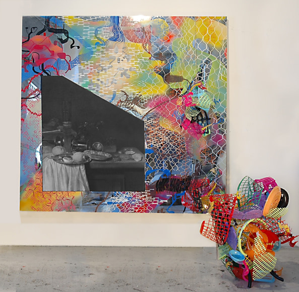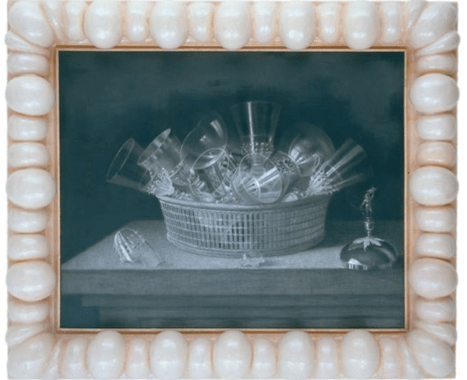 Basket with Broken Glasses, 2005, Graphite and Charcoal on Canvas with Mixed Media Frame, 73 x 87 inches (185.4 x 221 cm)