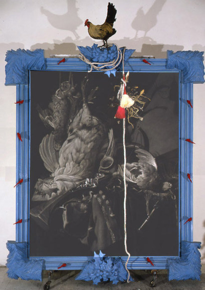 Still Life of Dead Birds and Hunting Weapons, 2005, Graphite on Canvas, Mixed Media Frame, 120 x 82 inches (304.8 x 208.3 cm)