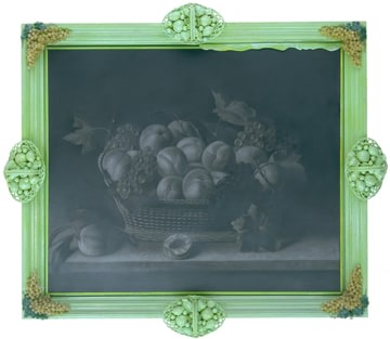 Basket with Peaches and Grapes, 2005, Graphite on Canvas, Mixed Media Frame, 78 x 89 in (198 x 226 cm)