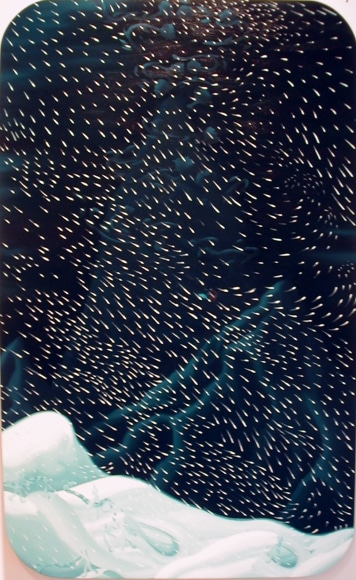 In an explorative departure from the art historical tradition of painting within the non-referential rectangle, Andrew Sendor has utilized specificity of both canvas shape and installation as integral and informative elements in this current body of work. Please Stand Clear is an installation of paintings which have been executed on panels fabricated according to the exact shape and dimensions of the windows on New York City subway cars (Model R68). The panels are installed in the same orientation as they are situated in a subway car to poetically simulate the experience of being on the subway.