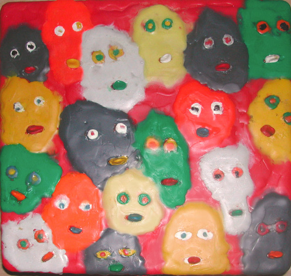 33 Faces, 2008, encaustic on wood, 24 x 24 in (61 x 61 cm)
