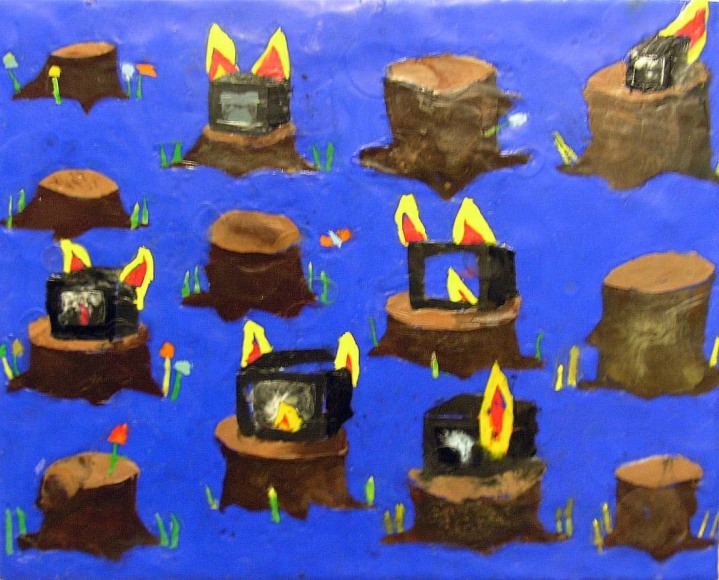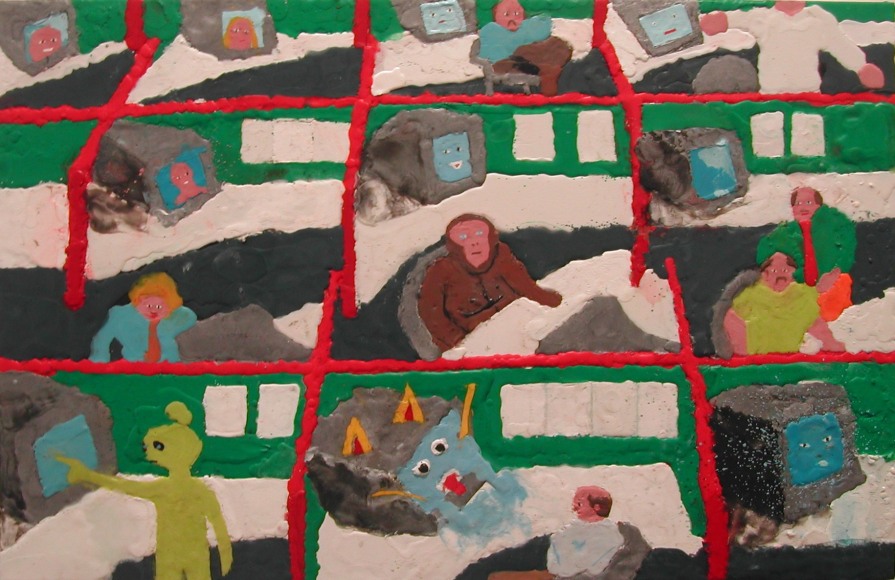 Bad Reception, 2008, encaustic on wood box, 16 x 20 in (40.5 x 51 cm)