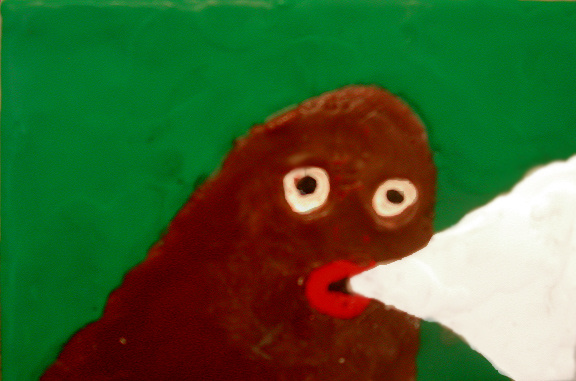 Turds Have Feelings Too, 2008, encaustic on wood, 8 x 5 in (20.5 x 13 cm)