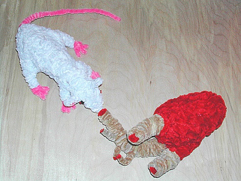 Tabled Installation, 2008, figure, three cans, M cup, Two foot packages, cigarettes, television, remote control, two rats, rat with heart and rat with stomach