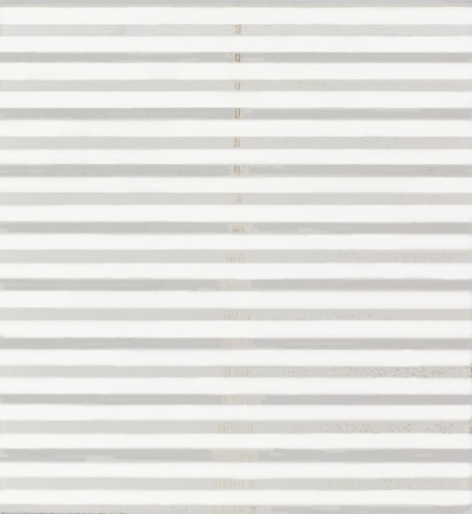 Washington Post critic Stephen Parks characterizes Rossʼ work in this way: “From a distance his canvases appear to be simple, minimal constructions of horizontal stripes with hints of vertical color in the background. Up close the paintings are seen to be extraordinarily beautiful and complex objects that induce a humming meditative state.” Ross states: “I try to produce a physical object which is extra- ordinary from oneʼs everyday life. An object that transcends the physical.”