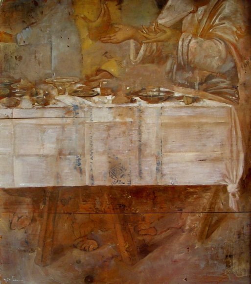 The Table, The Last Supper Series, 2002, Oil on wood, 18.5 x 16.5 in (47 x 42 cm)