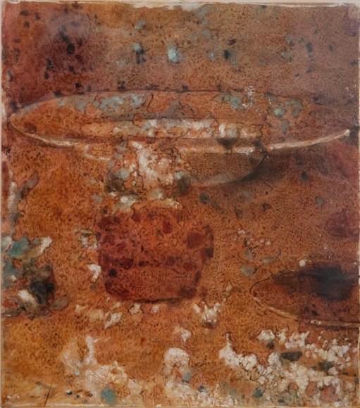 The Mold, The Last Supper Series, 2002, Oil on silk tissue paper, 10.5 x 9.5 in (27 x 24 cm)