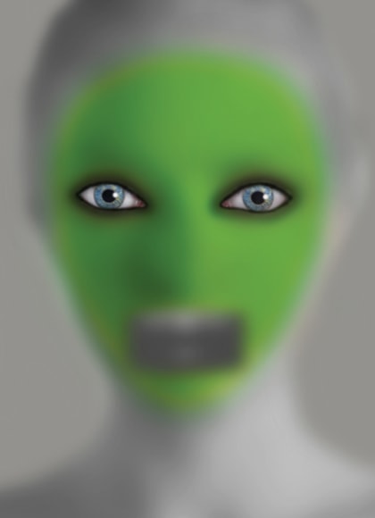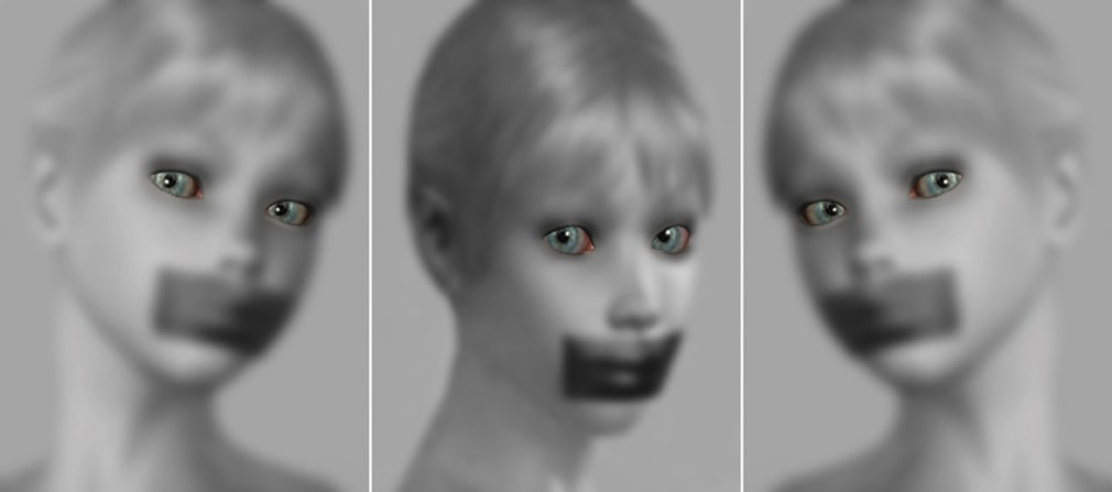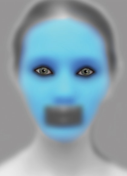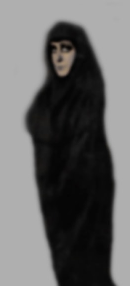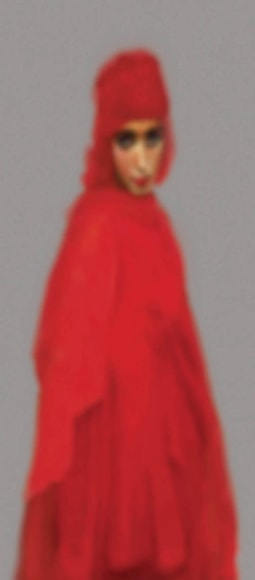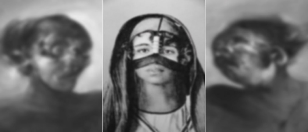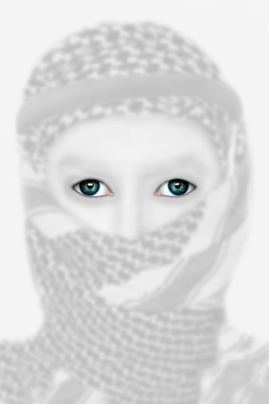 Some of the photographs Al Karim presents beneath a tautly stretched layer of silk fabric that operates as both a physical veil masking the portraits and a metaphorical filter or screen. This ’barrier’ between viewer and image can be conceived as a liminal space, a transcendental portal between being and becoming, where the mystical properties of change take place.