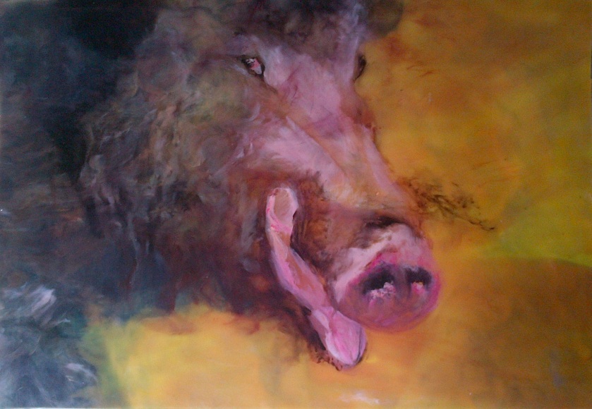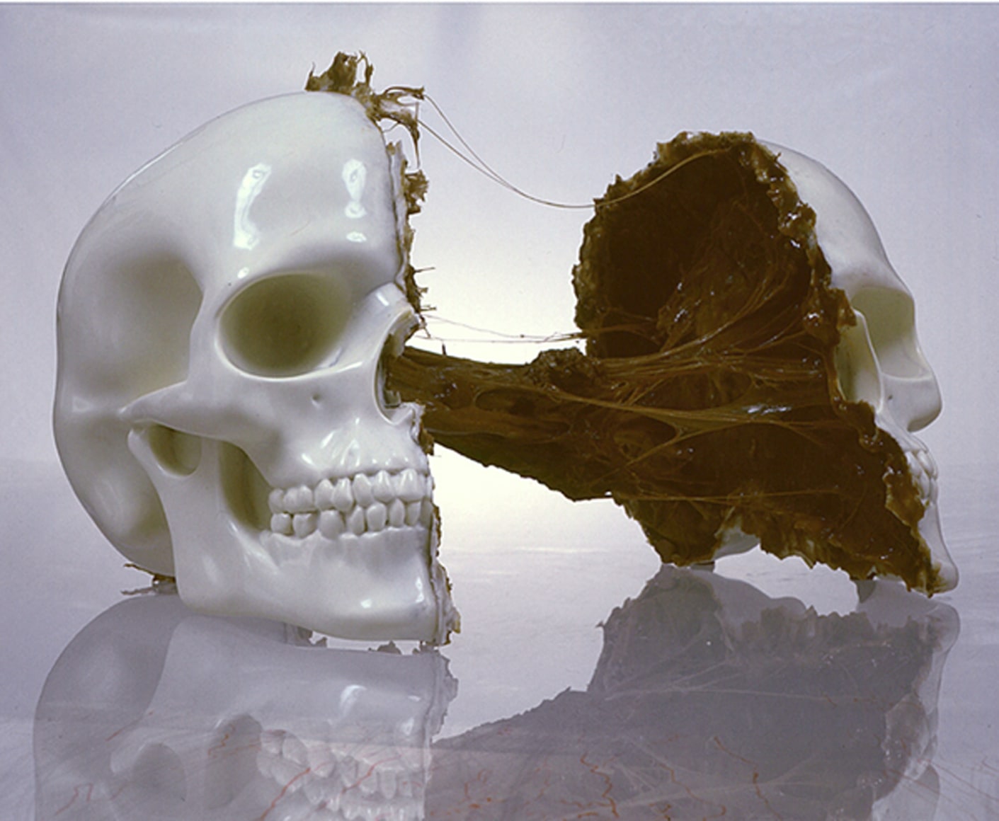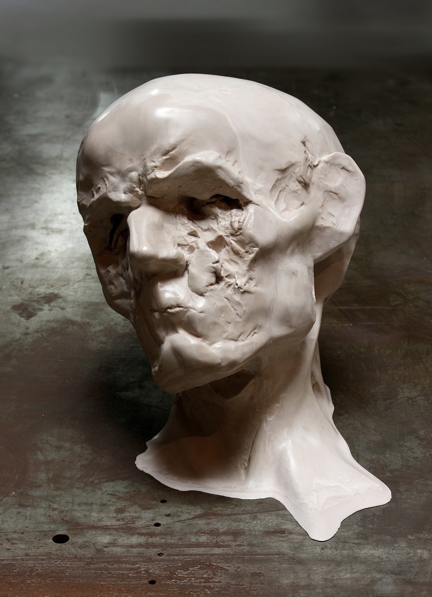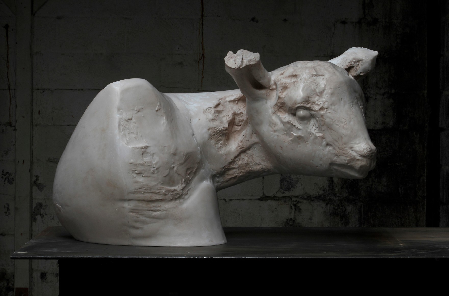 His “Lambs” series of aqua-resin lamb heads are docile, stately and gently mysterious. The lamb heads are not busts, but rather cropped sections that still carry an imaginary presence of the entire body. The pristine color and smoothness of the medium evoke classical tenets and a sense of timelessness, accentuating their fleeting innocence and our current societyʼs long departure from classical idealism.