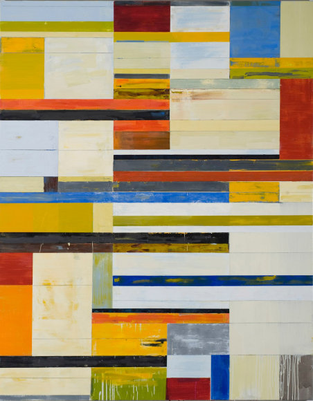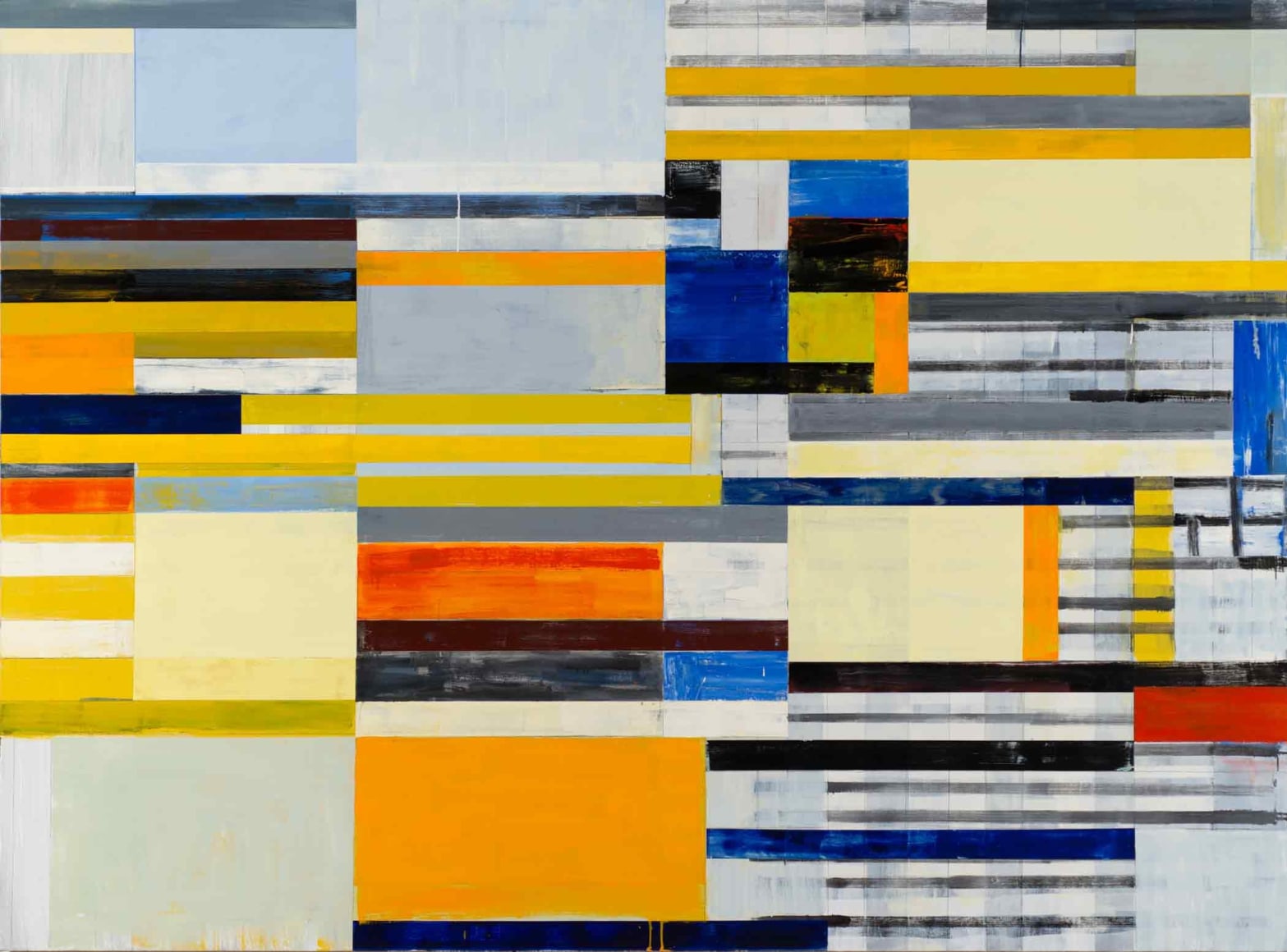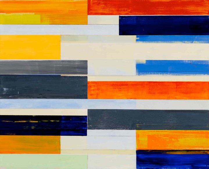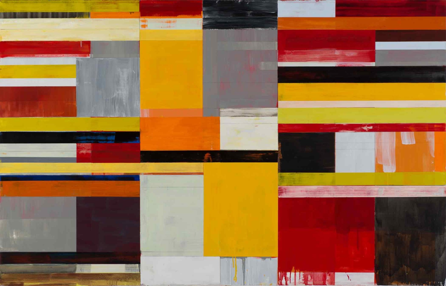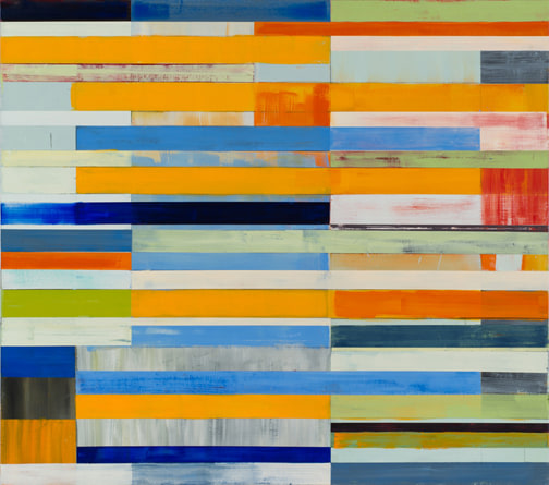 American artist Lloyd Martin is known internationally for his rhythmically constructed abstract painting. Throughout his career, he has explored the architectural environment around his studio, and his paintings reveal a framework and structure that reference a stark architecture. Although clearly abstract, Martin's paintings are still grounded in the real world. This architectural structure gives the work a sense of gravity, giving weight to his flights of vibrant color.