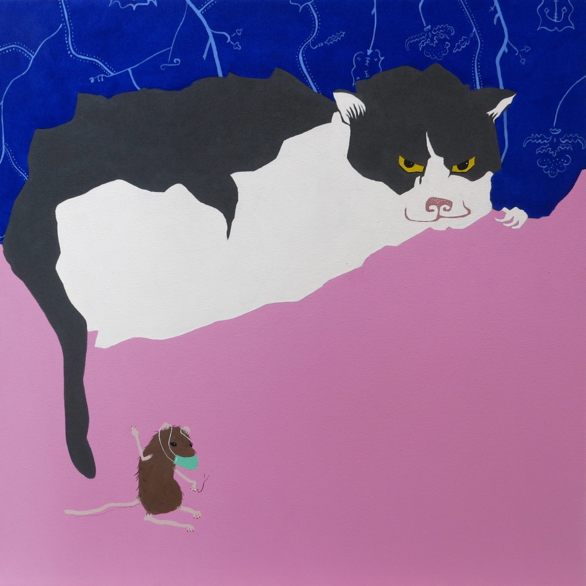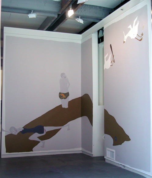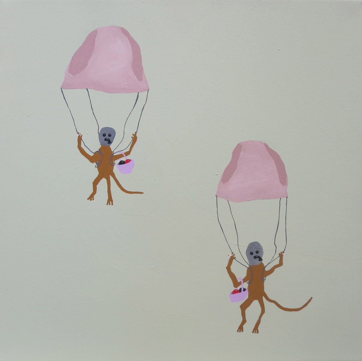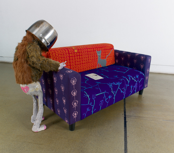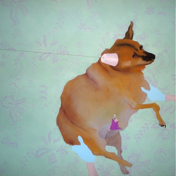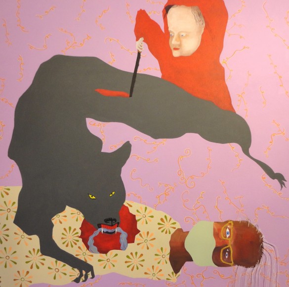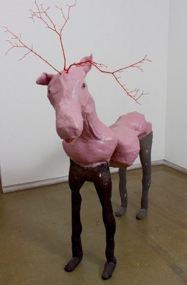 In her sculptures, the paper maché surfaces and gentle colors create a toy-like innocence that masks the underlying darkness for the ripe moment. Removed from the snug constellation of her painted scenes, these fantastically rogue agents trespass the boundary between art and reality and become even more invasive and confronting.