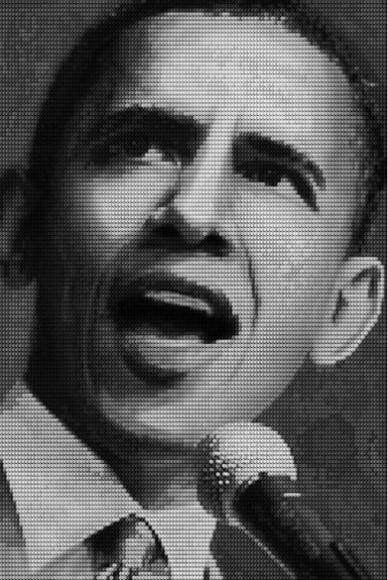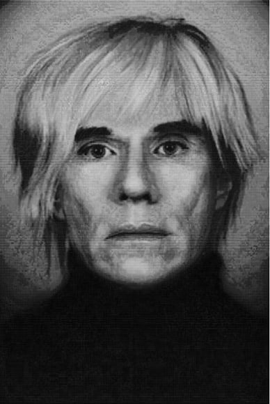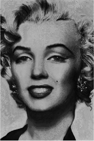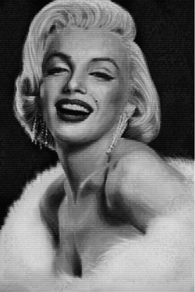 Confronting the viewer with a large-scale, imposing photographic image, one that is on the face of it, very familiar—a well-known celebrity photo—Alex Guofeng Cao connects the circuits of historical meaning by breaking down this memorable face into a grid of thousands of copies of a smaller, related image. Marilyn Monroe decomposes into strings of repeated pictures of JFK, or of the Mona Lisa; Pamela Anderson dissolves into tiny reproductions of Courbet’s L’Origine du Monde; Andy Warhol emerges from a sea of Mao’s.
