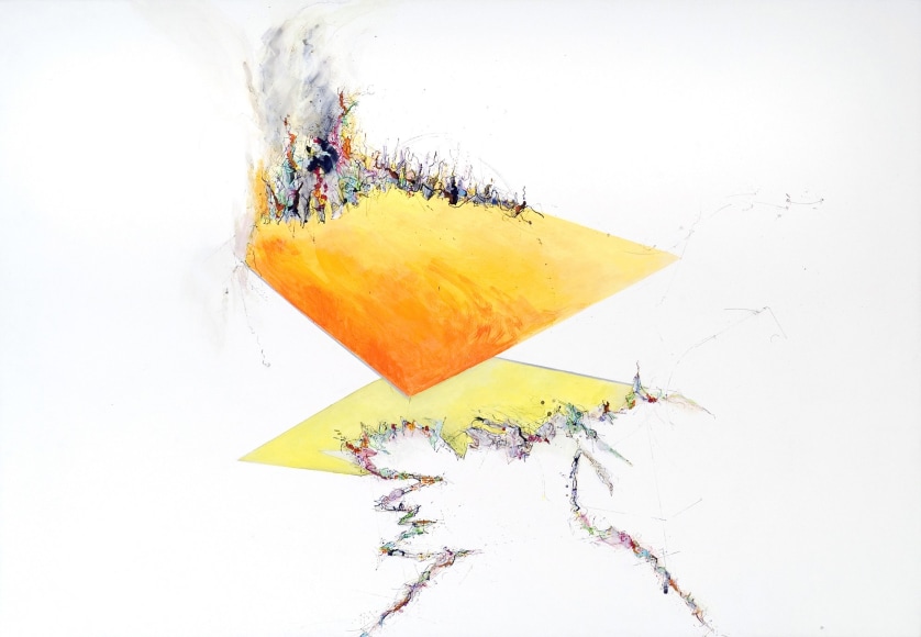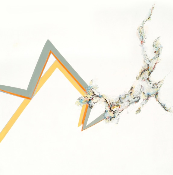gaps #4, 2006, Acrylic, ink, and colored pencil on canvas on wood, 27 x 35 in 69 x 90 cm