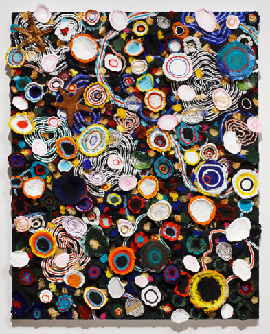The nine artists invited to participate were specifically chosen for their strength and poetic approach to the theme of communication between different cultures, acceptance, identity and transformation. Their work includes spiritual or ironic socio-political content expressed both in verse and textures that resonate with the curator's own inclinations. Many of the works on view are shown for the first time in New York.
