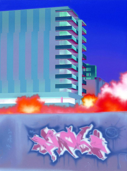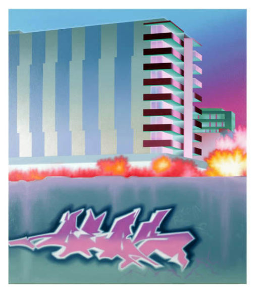 Bladerunner as a major influence, renders a seemingly post-apocalyptic view of his