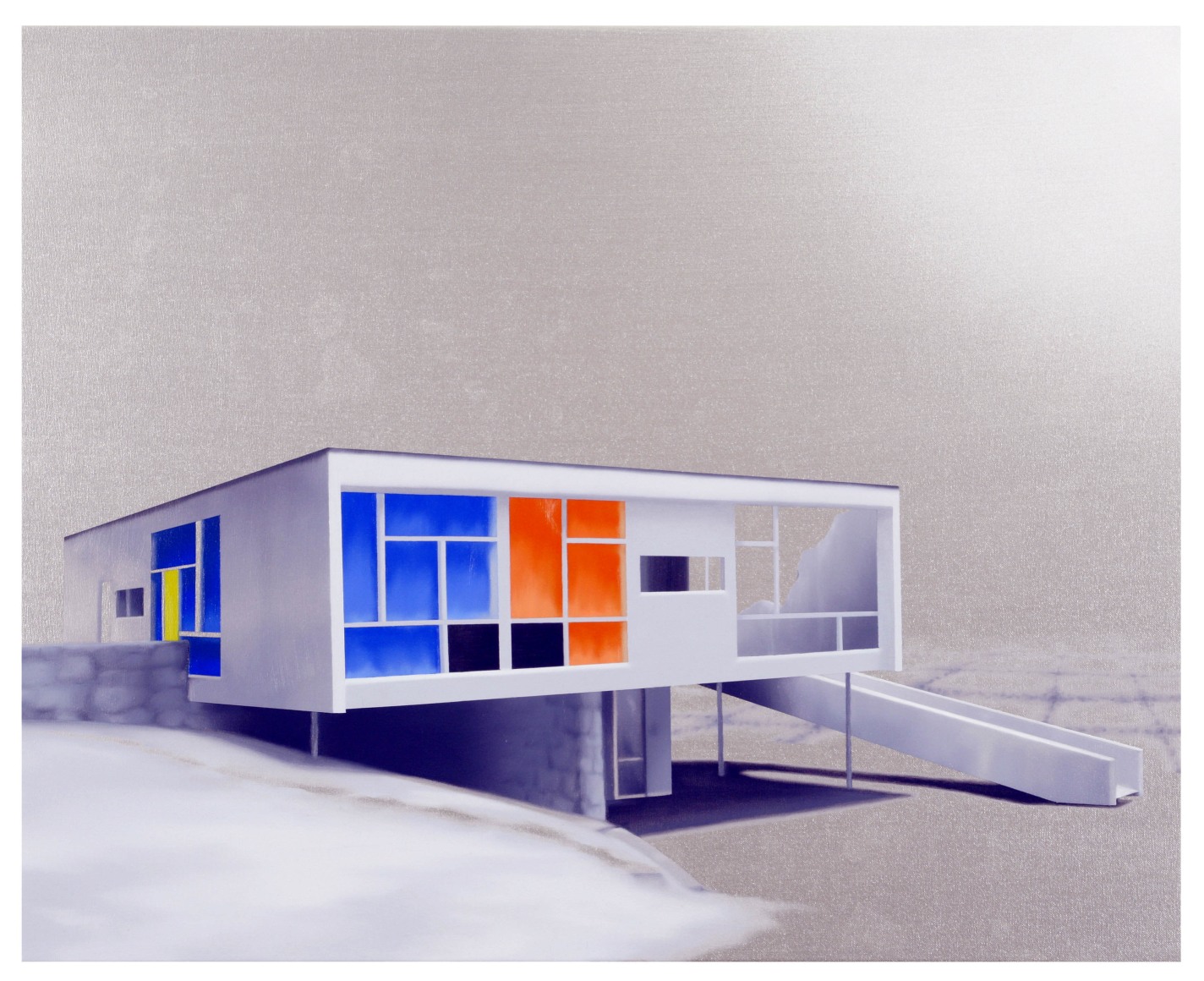 The paintings are sparse, creating an eerily familiar sense of place, a sort of architectural