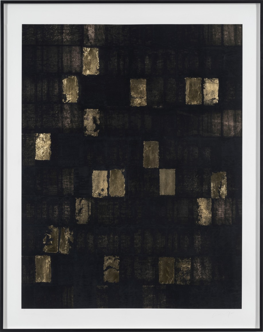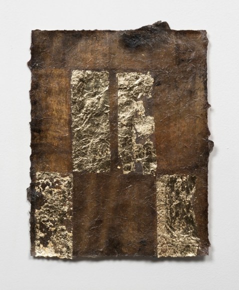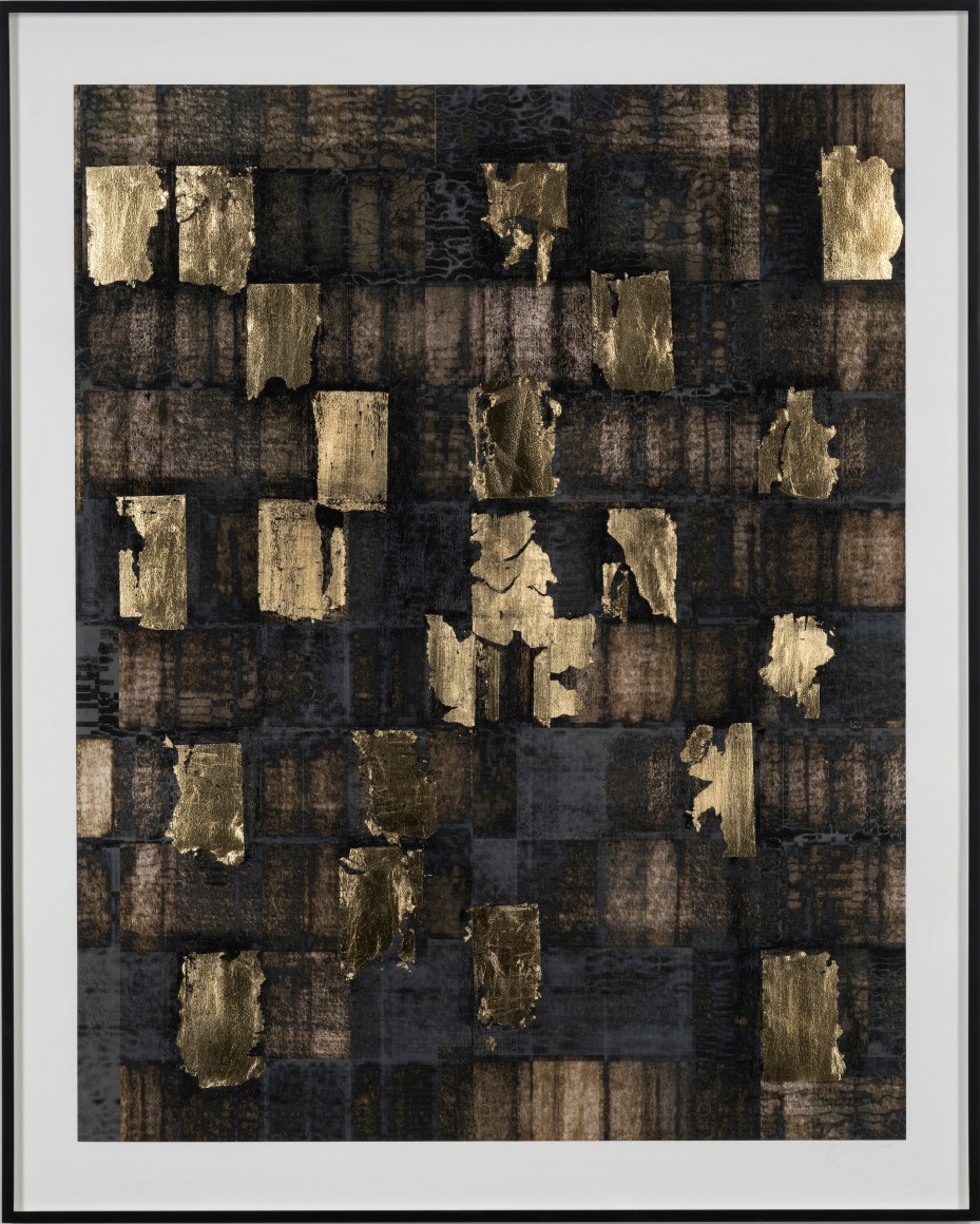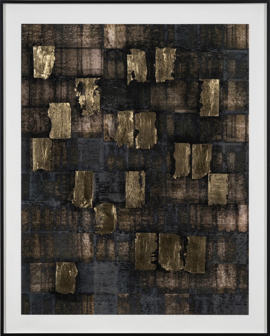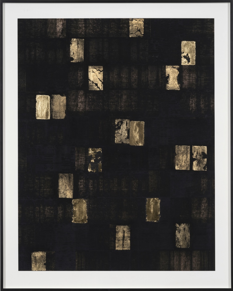 OR IV, 2015, Digital print on willow pulp paper, charcoal and gold leaf, 14 x 11 in (36 x 28 cm)