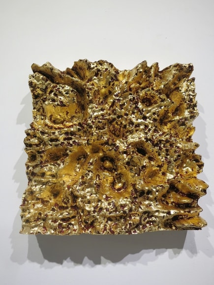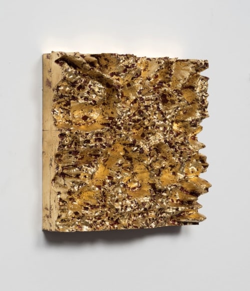 Gold Brink, 2015, Maple wood and gold leaf, 12 x 12 x 6 in