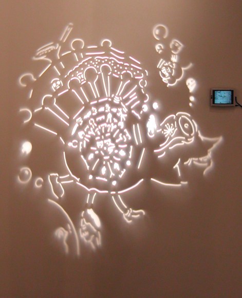 If You Play With Ghosts, You Become A Real Ghost, 2001-2006, gobo, theatrical light, digital animation, LCD screen