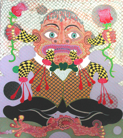 Aaron Johnson, Rose Peddler’s Lament, 2008, Acrylic on construction debris netting, 53.5 x 42 in (136 x 107 cm)