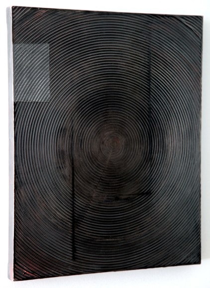 Track, 2012, Gesso, graphite and oil on canvas, 18 x 16 in (46 x 41 cm)