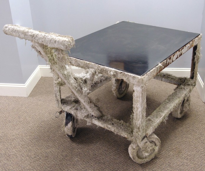 Cart, 2012, Gesso, graphite & oil on wood panel with fiberglass-covered cart, 38 x 28 x 51 in (97 x 71 x 130 cm)