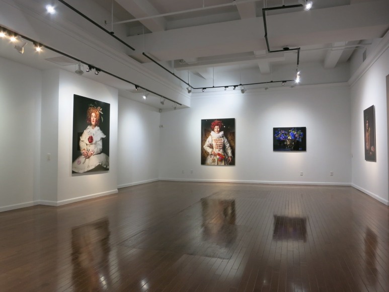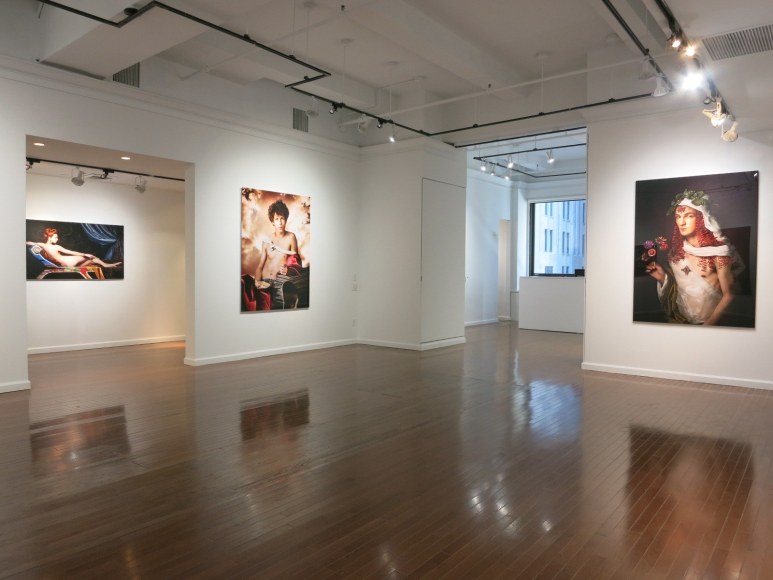 Fischnaller's larger-than-life photographs reference classical paintings of Vermeer and Caravaggio without losing sight of the vibrant present. The tradition of portraiture and its essential requirement of posing and staging are the central subjects of Fischnaller's works: his models appear as classical nobleman and commissioners, and pose as stand-ins for their own art-historical influences. His background in high-end fashion photography comes through in the compositions, evoking the same sense of intense construction, visionary planning and seductive theatricality. The scenes are dignified but embellished with surprising props of edibles and gaudy ornaments. They rely on the fascinating mutuality of modern absurdity andthe ubiquity of art historical cues. Riddle-like in their construction, the saturation of color, pattern and arrangements it provides humor in its surprises as much as it does in its discomforts. The elements of the picture fit together as seamlessly and vibrantly as an eclectic rococo interior, but their true success lies in their irresistible demand for further inspection within their blinding excessiveness. Lace, gold and diamonds are convincingly substituted for candy wrappers, Rubix Cubes and ashtrays.