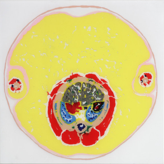 Admitting, in his own words, that he doesn’t like to paint with paint, Zehrer nowadays works mainly with Plexiglas. Employing humor and irony in his conceptual oeuvre, Zehrer questions and comments on the nature of art itself. For his images he uses a special technique of pairing two sheets of Plexiglas, and combining them with tubes through which color is injected into the image. With this artistic process the work acquires spontaneity and unpredictability. His abstract forms, as well as his often human-like motives embedded in imprecise architectural settings, reveal a mysterious engrossing world, removed from a specific space and time coordinate.