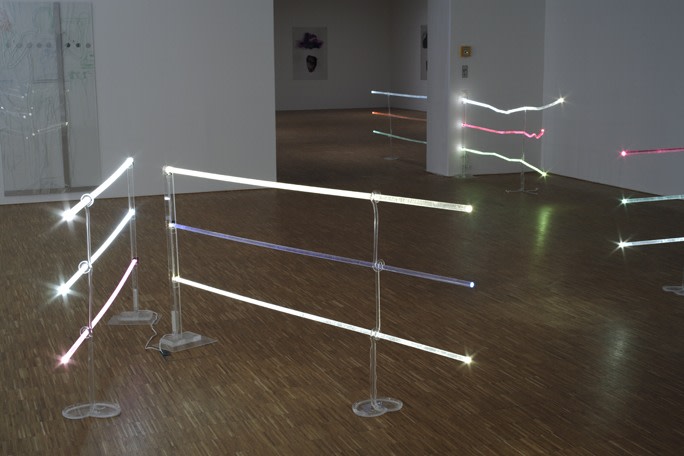 While researching his individual mode of artistic expression, Zehrer exhibits a high interest in the natural sciences and modern technologies. In his light “fences” presented at Stux gallery, the artist uses Plexiglas tubes which, via high-tech electronics attached to one end of each tube, are streamed through with colorful, glowing light. With this technique Zehrer invented his own specific way of creation, employing light instead of paint, as artistic material.
