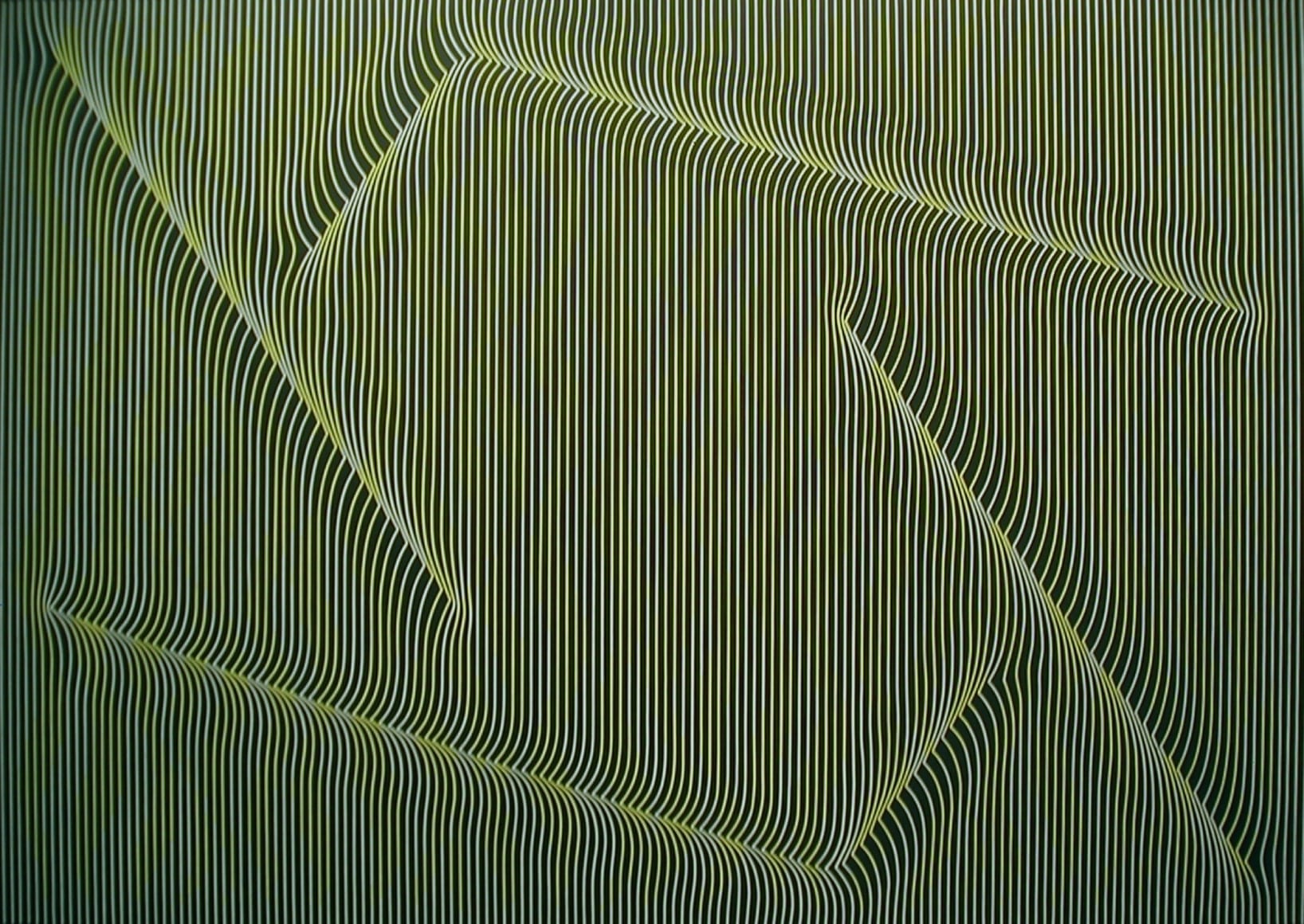 In the 1950’s, Stanczak began to form a unique artistic sensibility founded on the rigorous color experimentation of his teacher Josef Albers, and enlivened by his own intuitive grasp of art’s capacity to express hidden dimensions of the human spirit. His breakthrough New York exhibition took place at the historic Martha Jackson Gallery in 1964. Entitled “Julian Stanczak – Optical Paintings,” it inadvertently helped to coin the name for one of the pivotal movements of that turbulent decade – Op Art. Riding the crest of that wave, along with Bridget Riley and Richard Anuszkiewicz, Stanczak rose to prominence as one of the foremost young painters of the movement. His work was featured in all the major exhibitions of Op Art, including The Responsive Eye at MoMA in 1965, and Stanczak was popularly identified with the movement when his work appeared in both Time and Life magazine articles during the 1960’s.