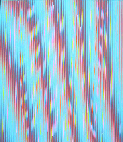 In the 1950’s Stanczak began to form a unique artistic sensibility founded on the rigorous color experimentation of his teacher Josef Albers, and enlivened by his own intuitive grasp of art’s capacity to express hidden dimensions of the human spirit. His breakthrough New York exhibition took place at the historic Martha Jackson Gallery in 1964. Entitled “Julian Stanczak – Optical Paintings,” it inadvertently helped to coin the name for one of the pivotal movements of that turbulent decade – Op Art. Riding the crest of that wave, along with Bridget Riley and Richard Anuszkiewicz, Stanczak rose to prominence as one of the foremost young painters of the movement. His work was featured in all the major exhibitions of Op Art, including The Responsive Eye at MoMA in 1965, and Stanczak was popularly identified with the movement when his work appeared in both Time and Life magazine articles during the 1960’s.