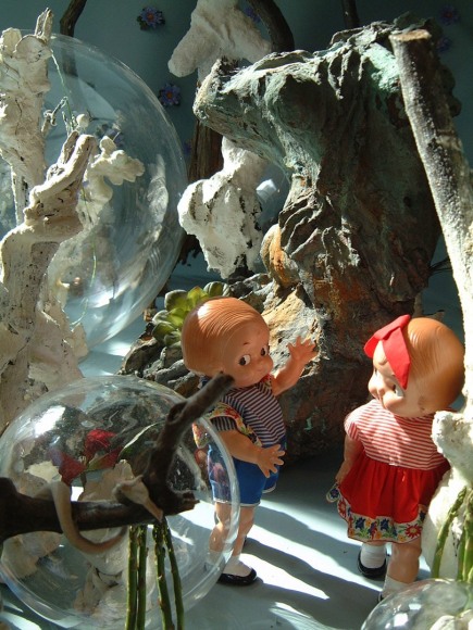 She continues her search for utopian rebirth in Planetic Exodus. This time the dolls’ eyes reflect the bitter trials of immigration resulted by global shifts in power and the endless economic and political wars plaguing the world. Many things have changed since the 19th century including massive shifts in human migration contributing to an extraordinary cultural diversity. Venieri’s migratory imagery tackles the romantic and enduring notion of an ideal life in another land or country.