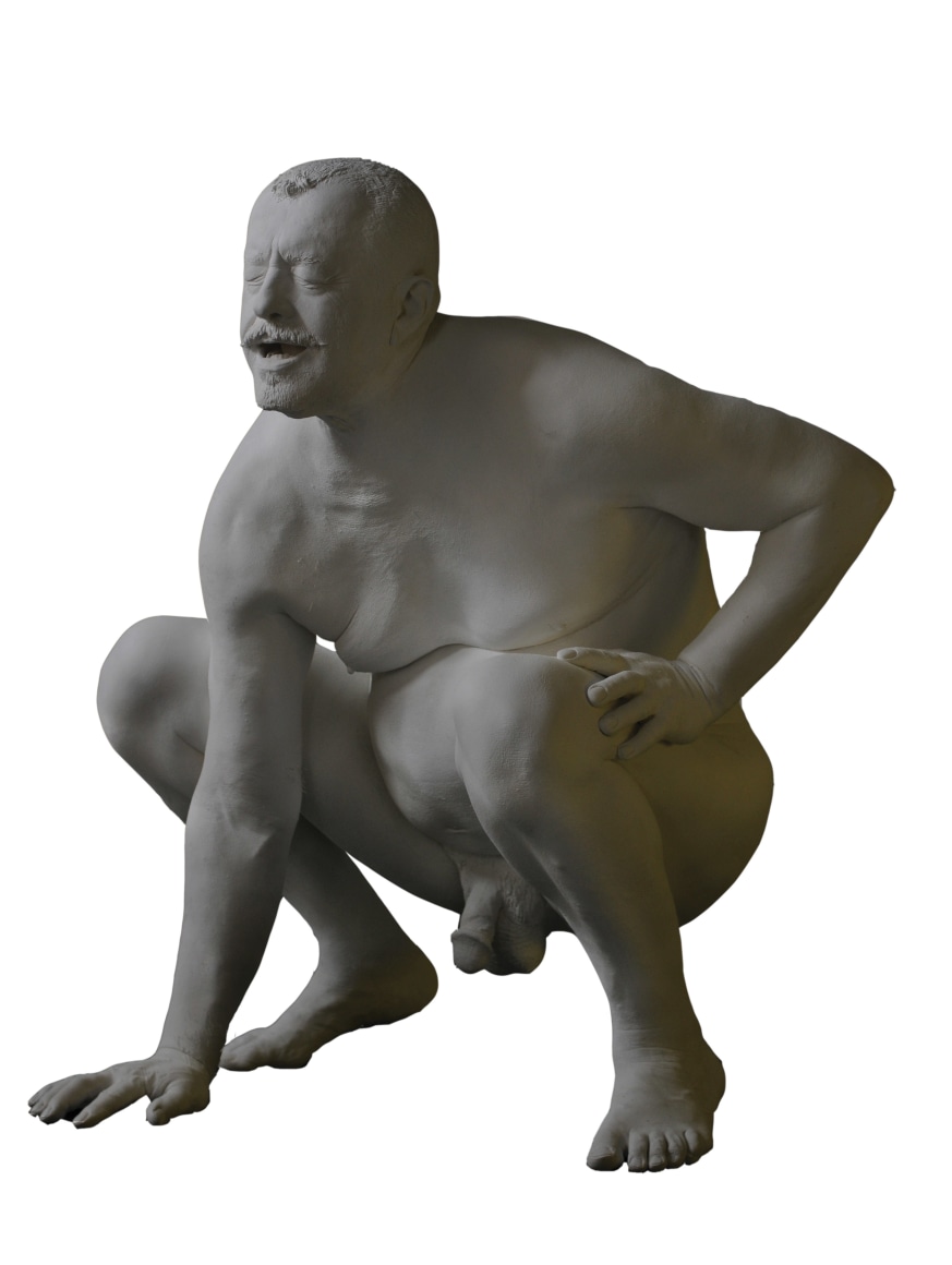 The profoundly confessional nature of Okshteynʼs painting is further emphasized by the inclusion of life-sized cast marble renditions of the artistʼs own nude body (surrogates for the artist) measured, despairingly, against the now mythologized achievements of art history giants. Sitting on the precipice between pain and pleasure, the artist has created in these works complex hybridizations that confuse distinctions between time and place, real and unreal. In further mining the surface of our shared reality, Okshteyn delves into the distinctiveness of his own fantasies, drives, appetites, fears, and desires.