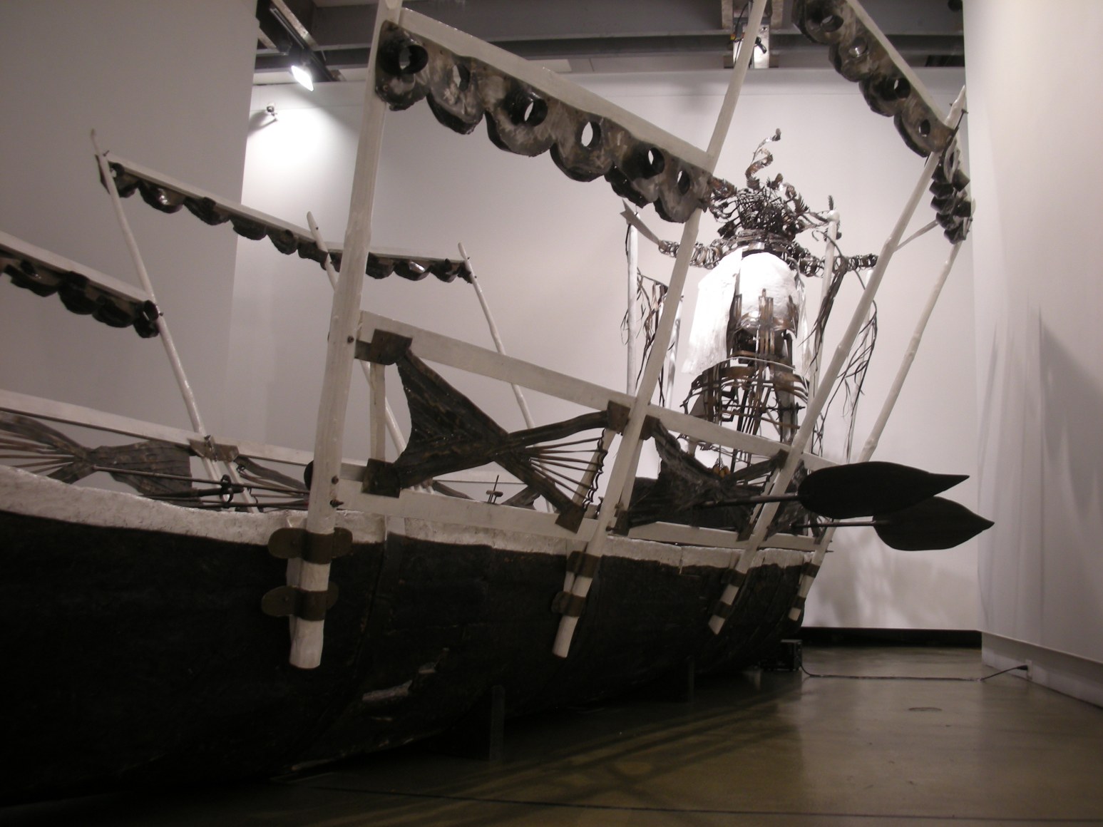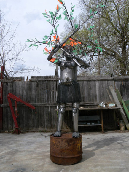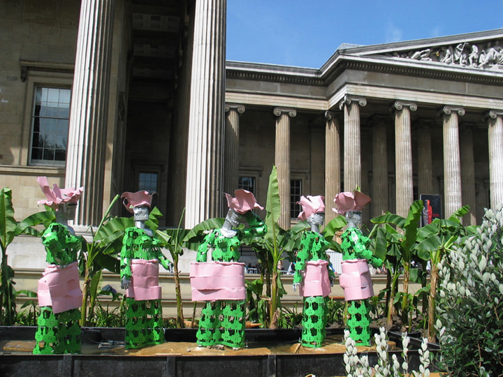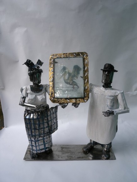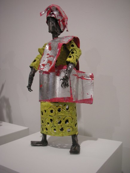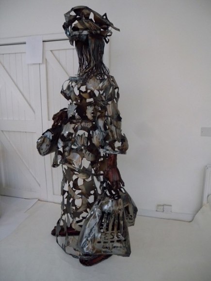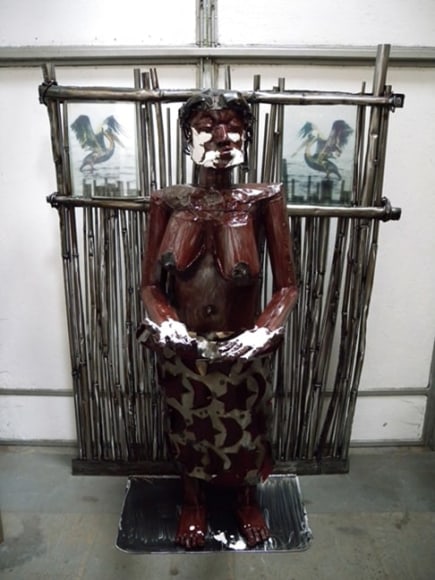 Filtered through this African background, an international education and a cosmopolitan life, Sokari Douglas Camp's objects embody narratives of the socio-political (such as Living Memorial, 2006), social (Plastic Bag Series, 2009), philosophical/existential (Teasing Suicide, 2004), psychological (Freud - White Sacrifice, 1998), and mythical (Alali Aru, 1986) to the more current political ones, such as Relative (2010), Birds Extinct Birds (2010) and Underskirt Protest (2010). From life size sculptures of six feet tall and much larger to intimate works of just 20 inches high, they all captivate and convince of a world that is far away and so close at the same time.