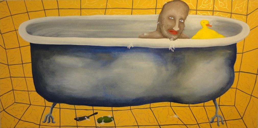 Fidel in an Upstate Bathtub, 2015, Acrylic on canvas, 30 x 60 in (76 x 153 cm)