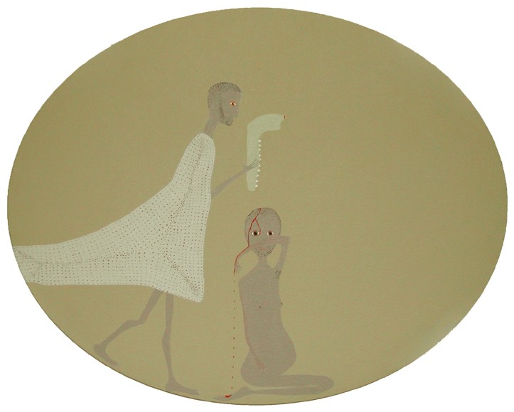 In her painting Two Men Fighting Over a Thing That Makes Them Happy (2004)