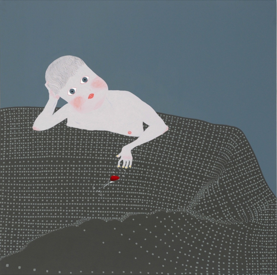 the boy seem disembodied, and the idiosyncratic tiling design around the edges adds to