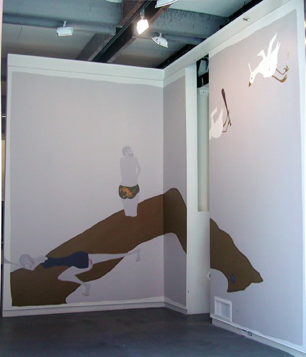 Enter Two Birds, from Right, Descending with Remarkable Speed and Urgency, 2006, site specific installation, acryclic on wall, dimensions variable