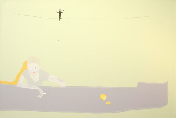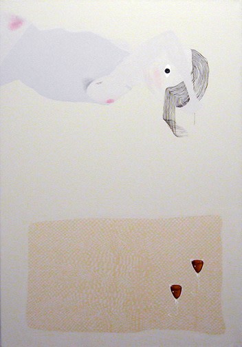 Woman and Two Glasses of Wine, 2005, acrylic on canvas, 43 x 27 in (109.5 x 68.5 cm)